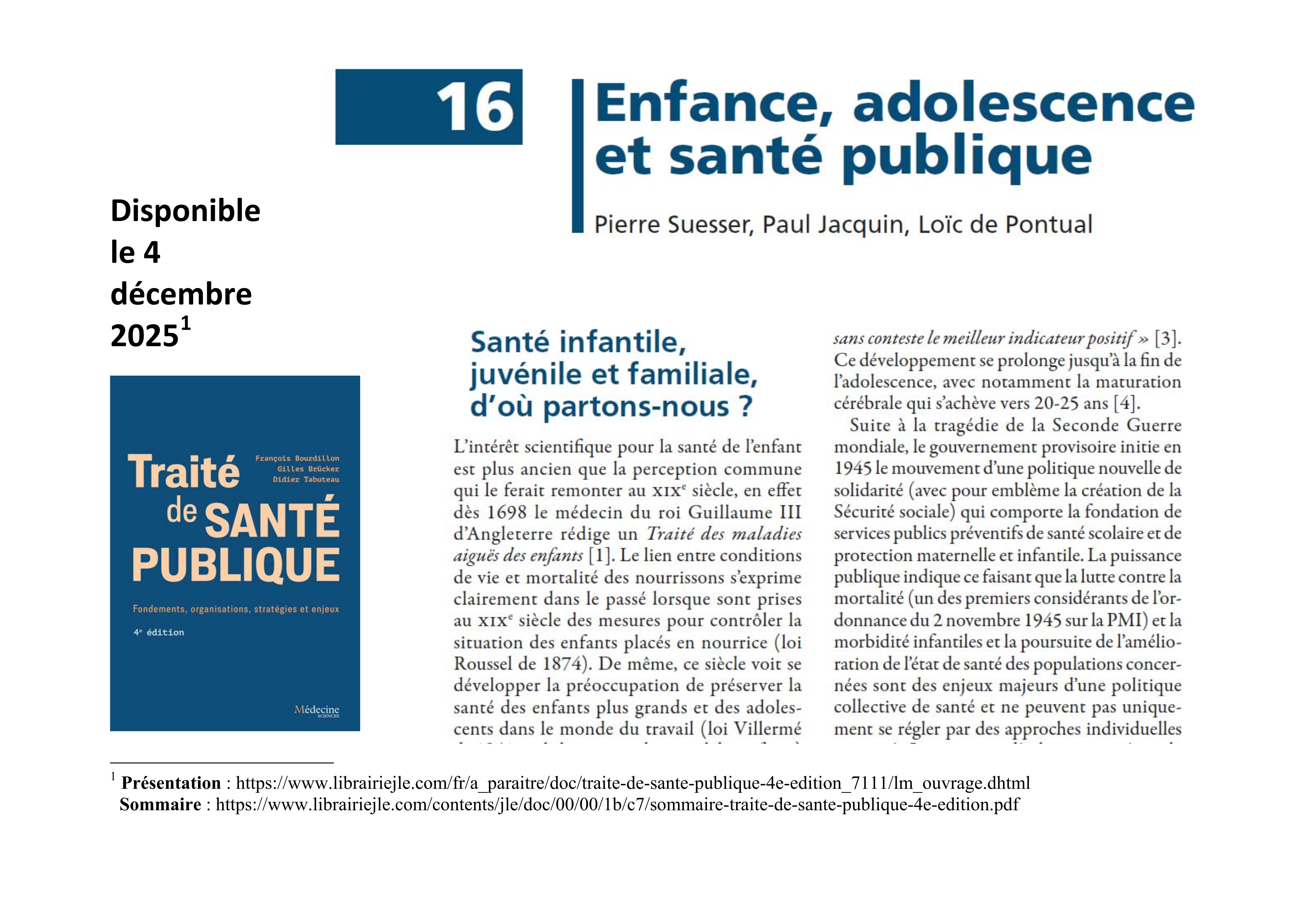 Nouvelle édition du Traité de Santé publique : un chapitre consacré à la santé de l’enfant et de l’adolescent